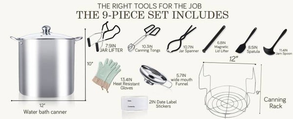 Essential Tools Included – Funnel, jar lifter, magnetic lid wand, tongs, and more for safe and simple canning.